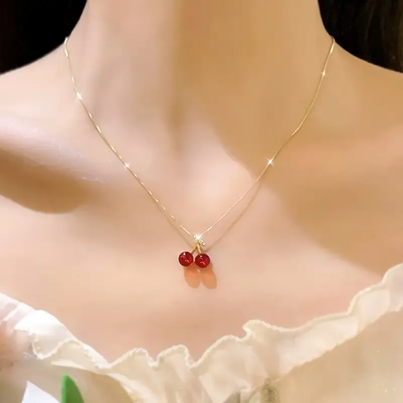 عقد كرز أحمر أنثوي أنيق Collier Pendentif Cerise Rouge Élégantالأكثر مبيعا