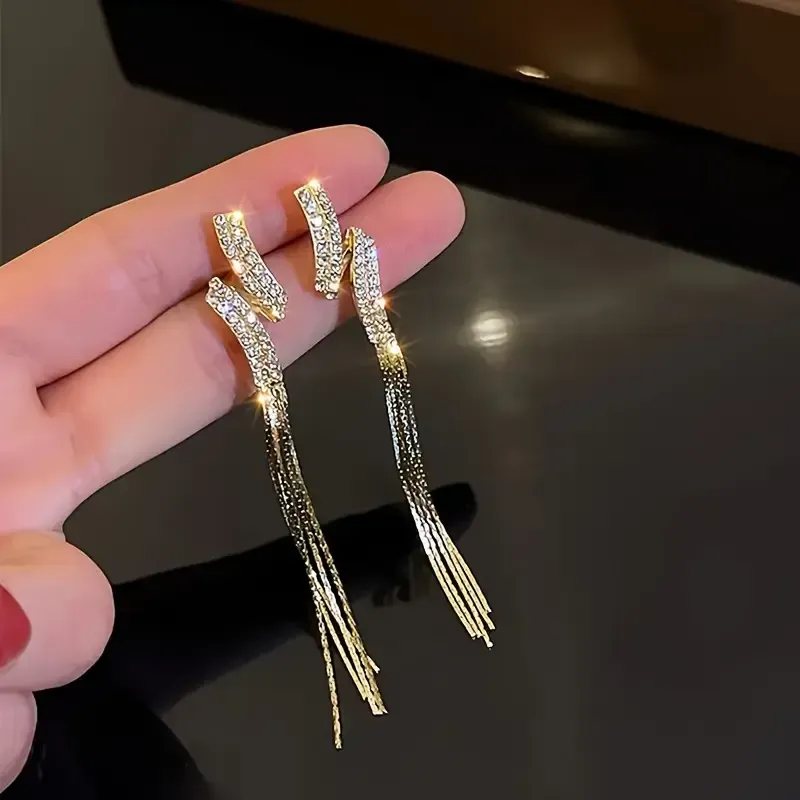 الأقراط الفاخرة بالزركون اللامع Boucles d’Oreilles Tasselالأكثر مبيعا