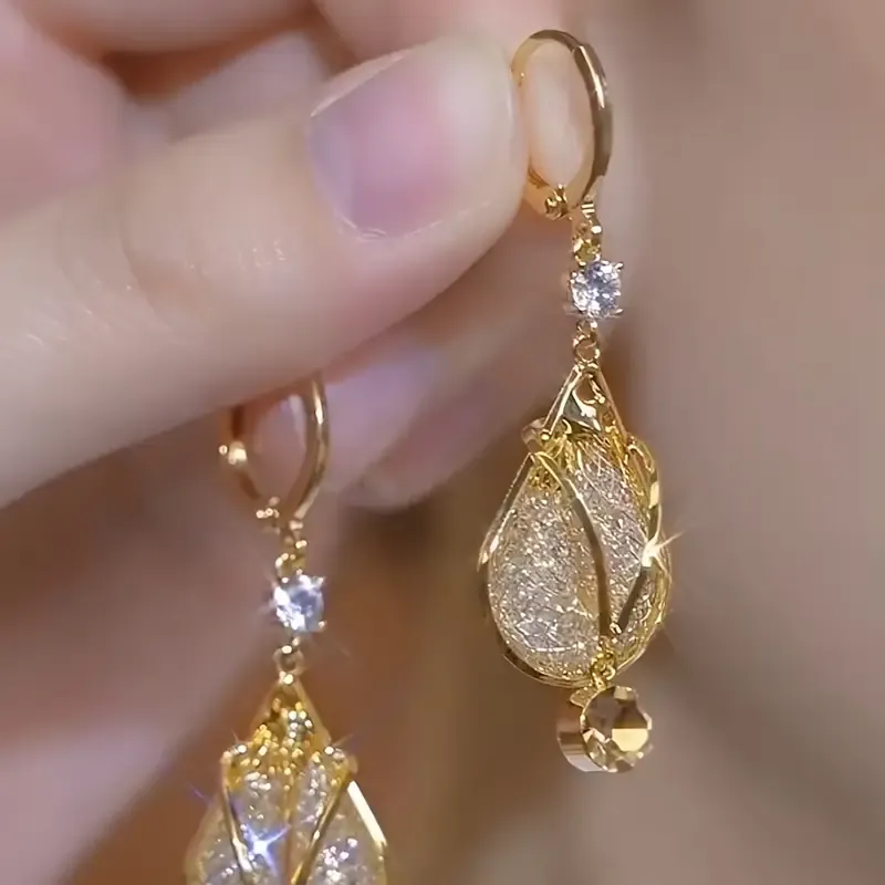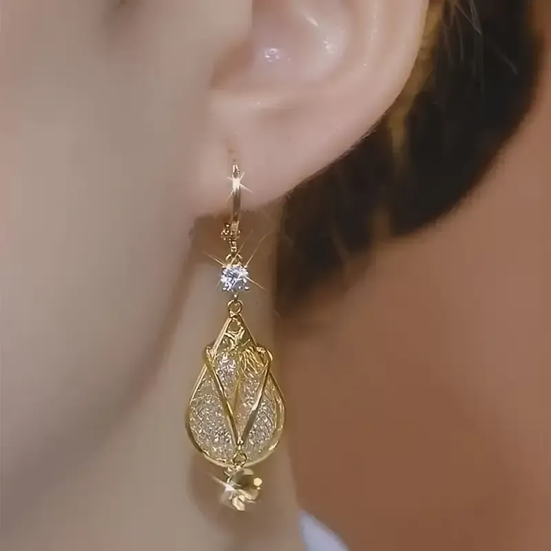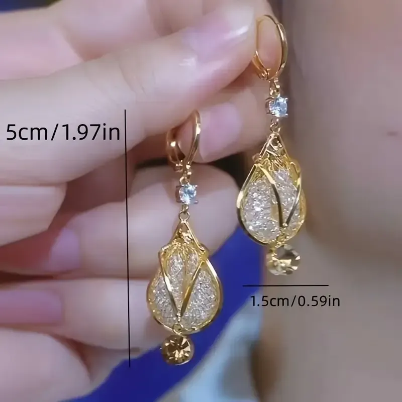 أقراط متدلية بتصميم زهرة التوليب الذهبية Boucles tulipe en cristal doréالأكثر مبيعا